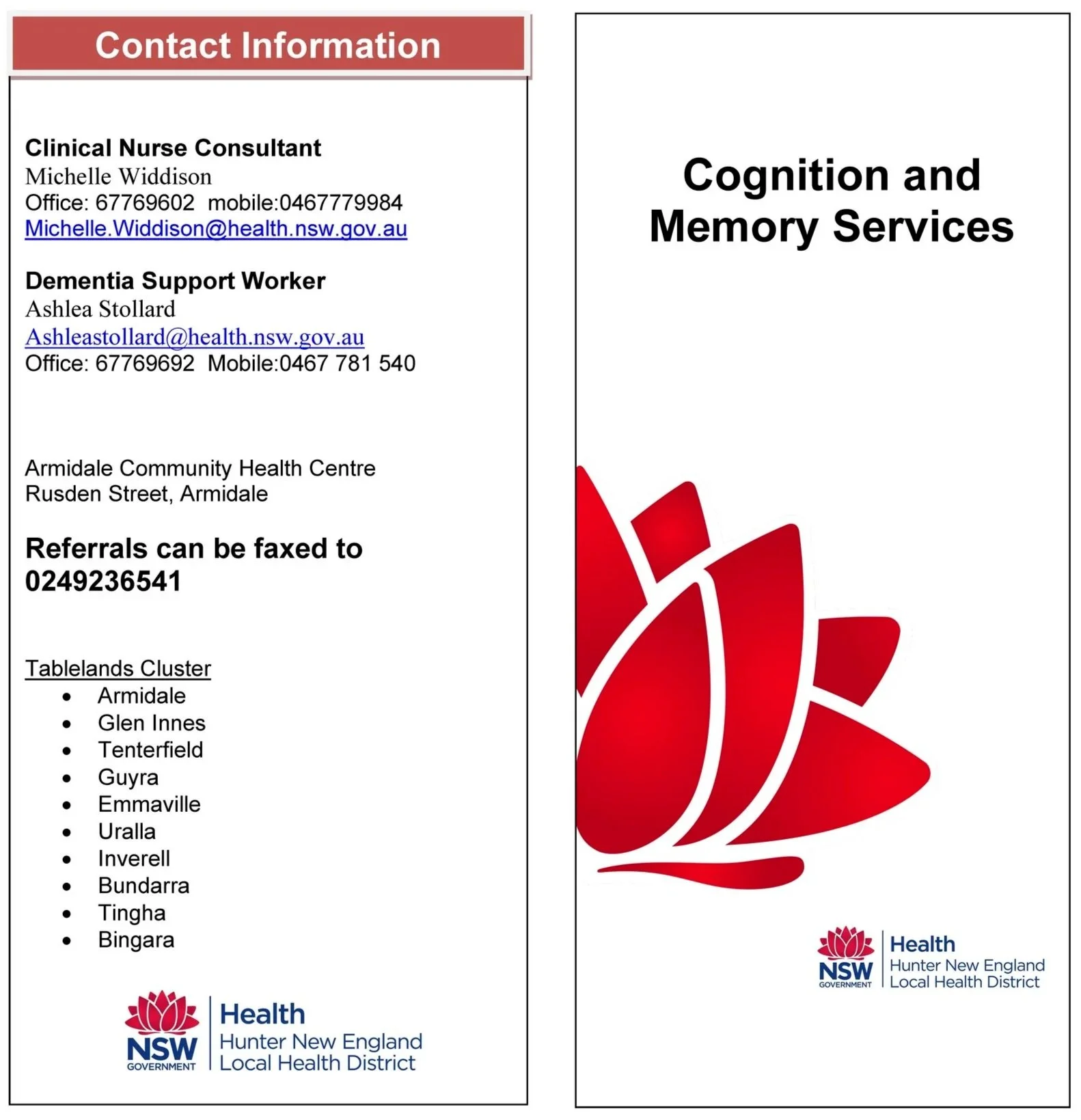 Armidale-based service for people across New England who are concerned they may have a problem with memory or other thinking skills - requires referral from your GP.