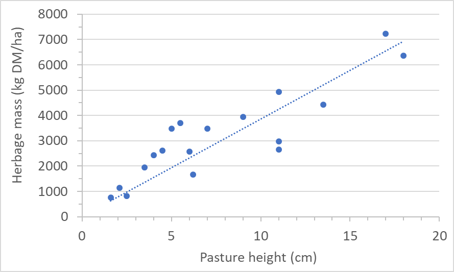 On average there was about 350kg dry matter/ha for every centimetre of pasture height.