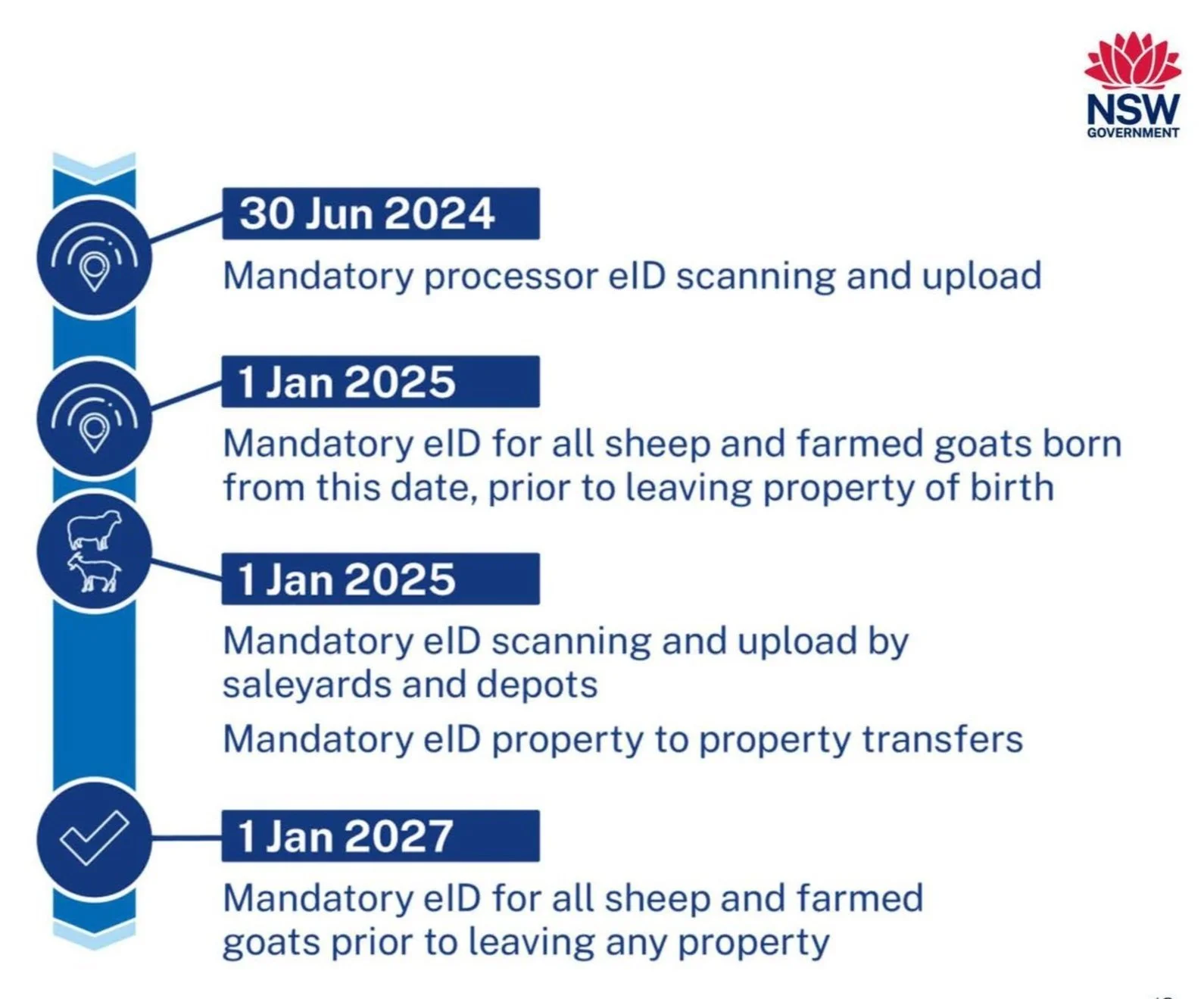 NSW is currently transitioning to mandatory individual electronic identification for sheep and goats.