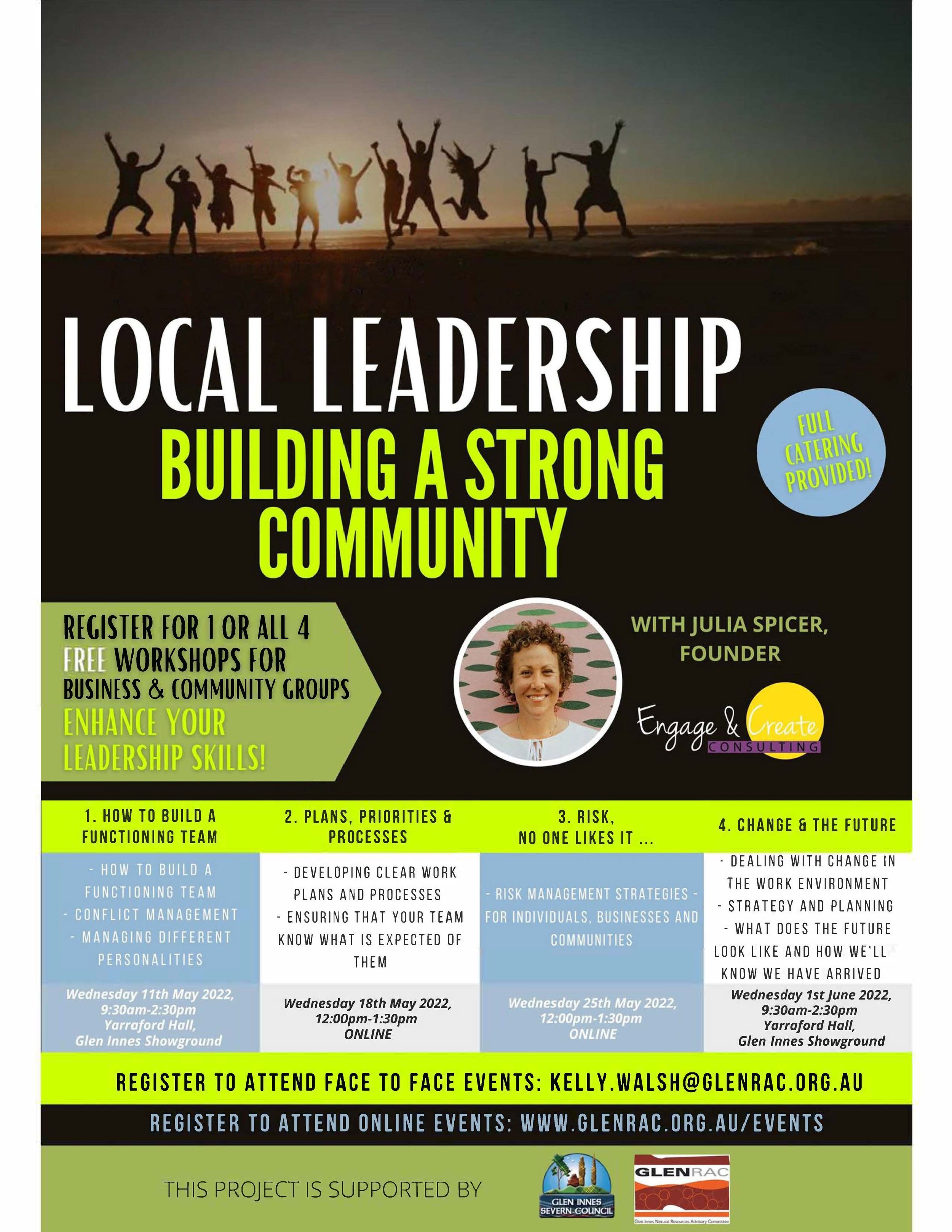 Register for this FREE workshop for business and community groups by emailing kelly.walsh@glenrac.org.au
