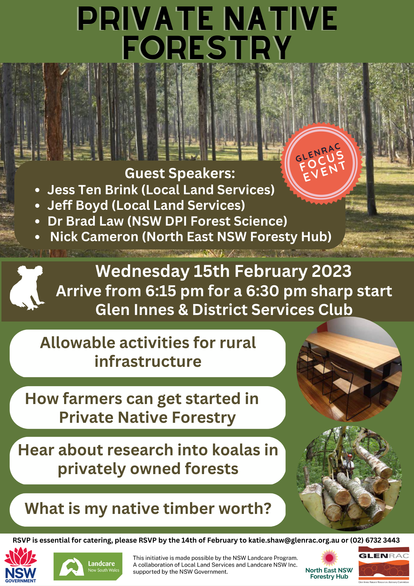 Join us to hear all about Private Native Forestry and how it can improve the biodiversity of your property.